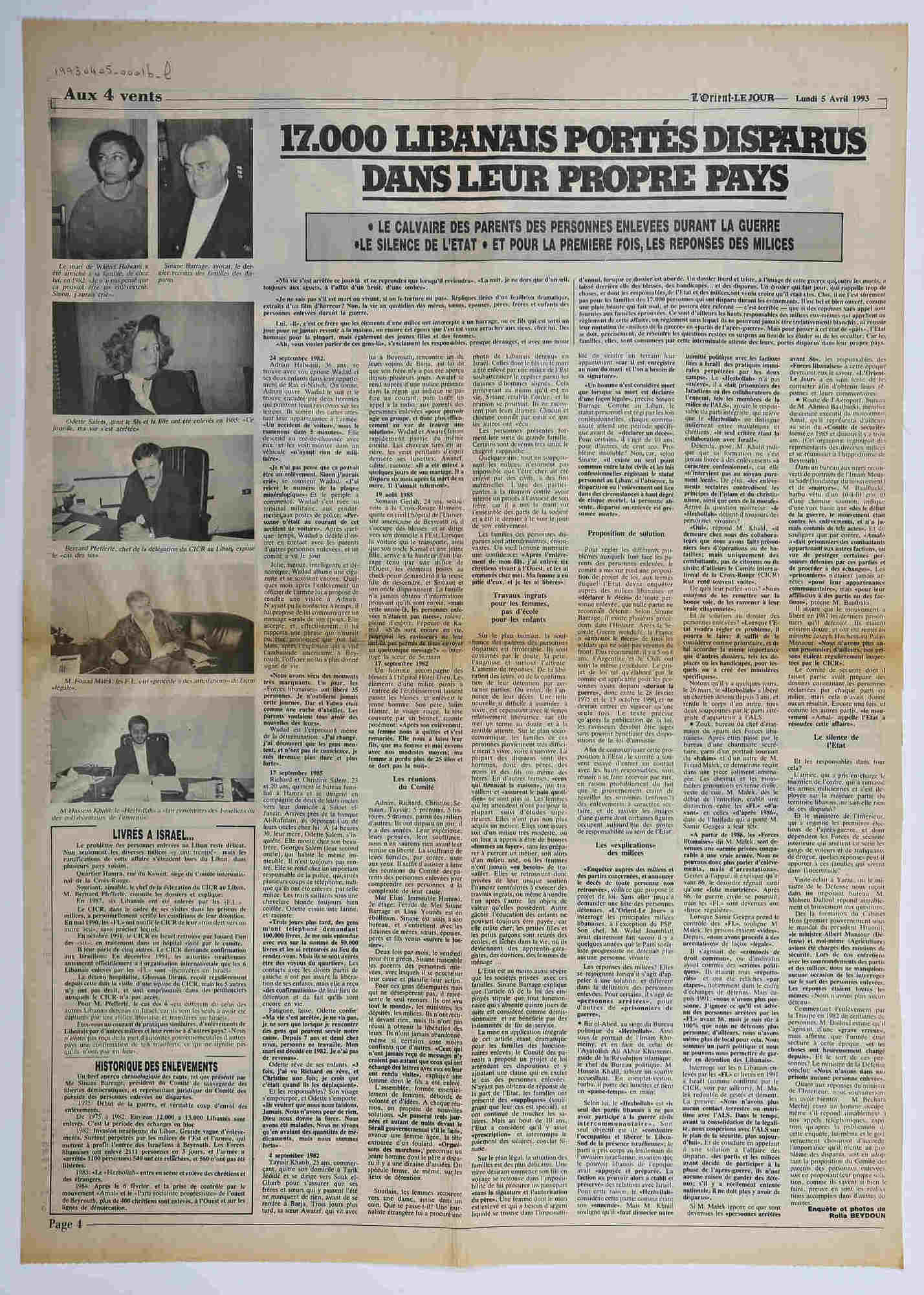 - fr 17,000 Libanais portés disparus dans leur propre pays