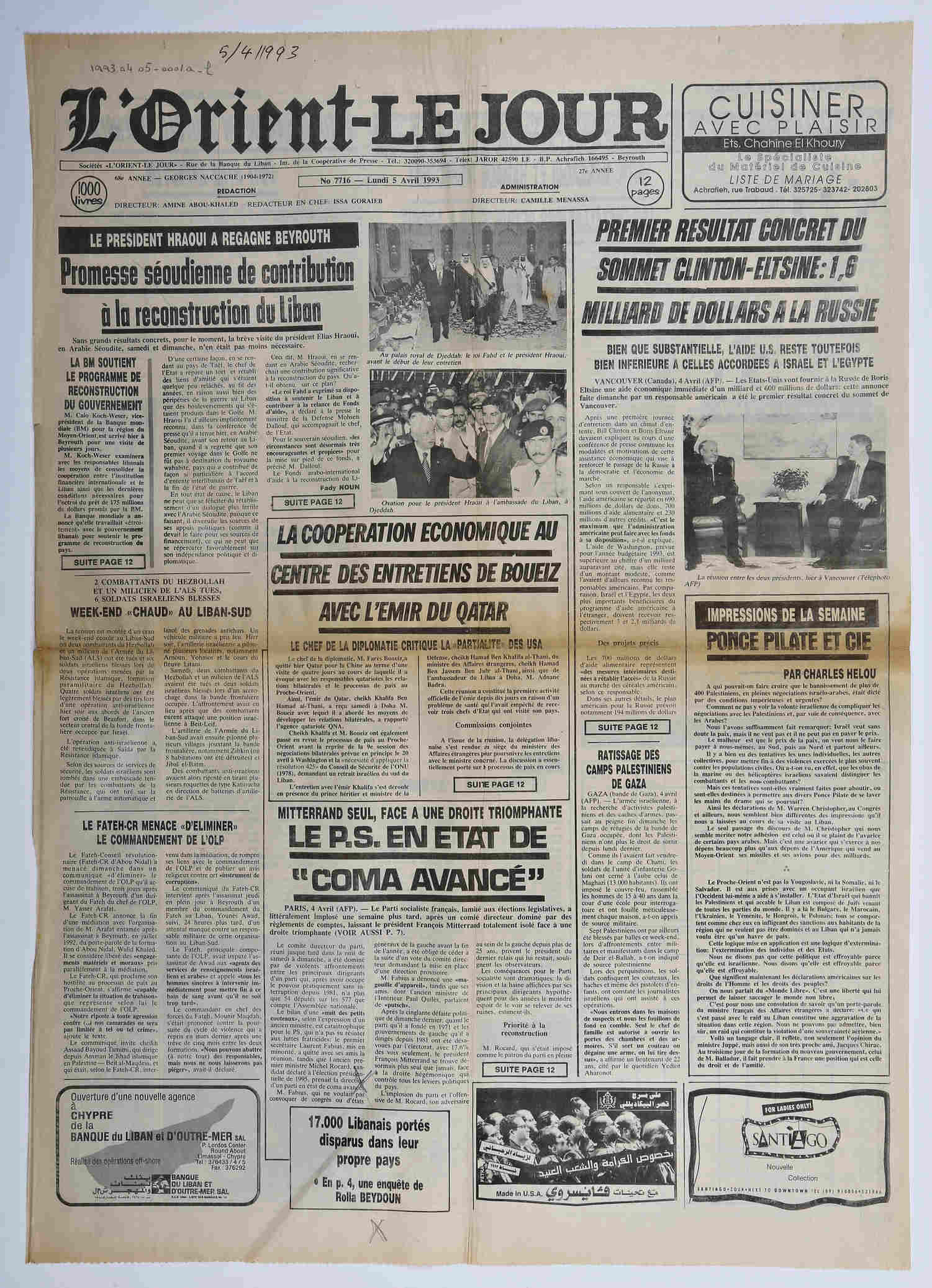 - L'Orient Le Jour, page 1 et 4