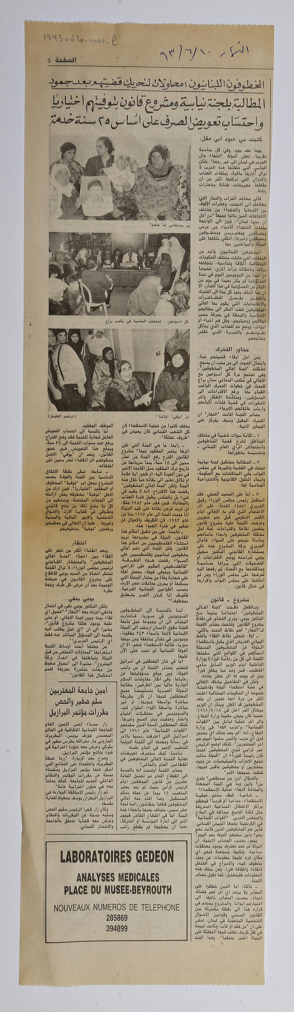 Demands for a new Parliamentary Committee and for a new facultative law proposal that stipulates considering the kidnapped legally deceased and thus calculating their employment termination indemnity on the basis of 25 years of service.