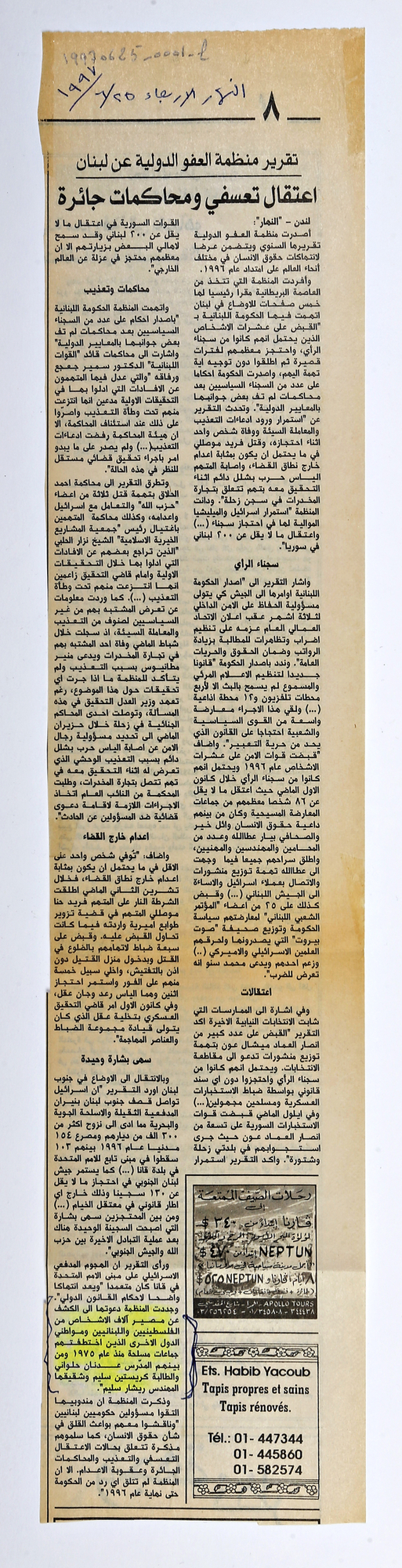 - en Amnesty International Report on Lebanon: Arbitrary detentions and unjust trials.