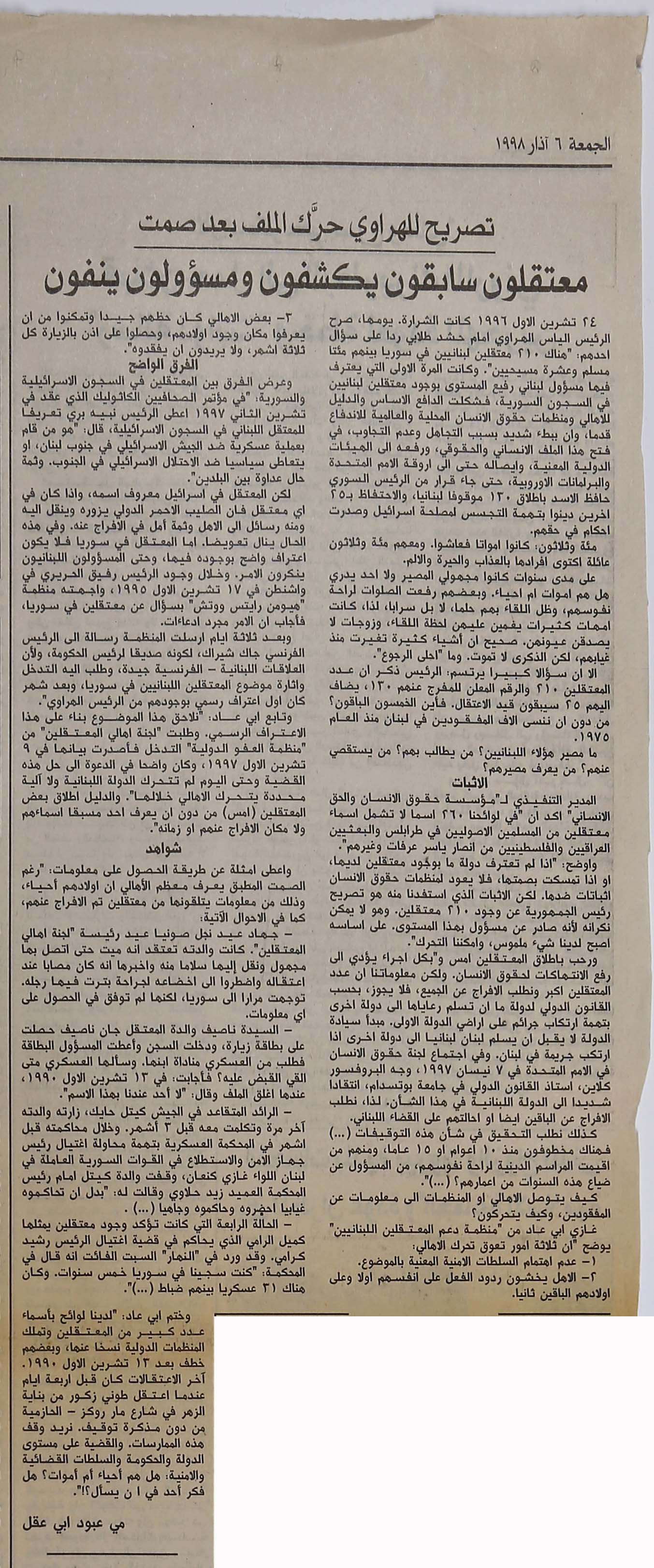 Hrawi’s statement pushes the dossier forward after prevailing silence: Former detainees divulge new information and officials deny.