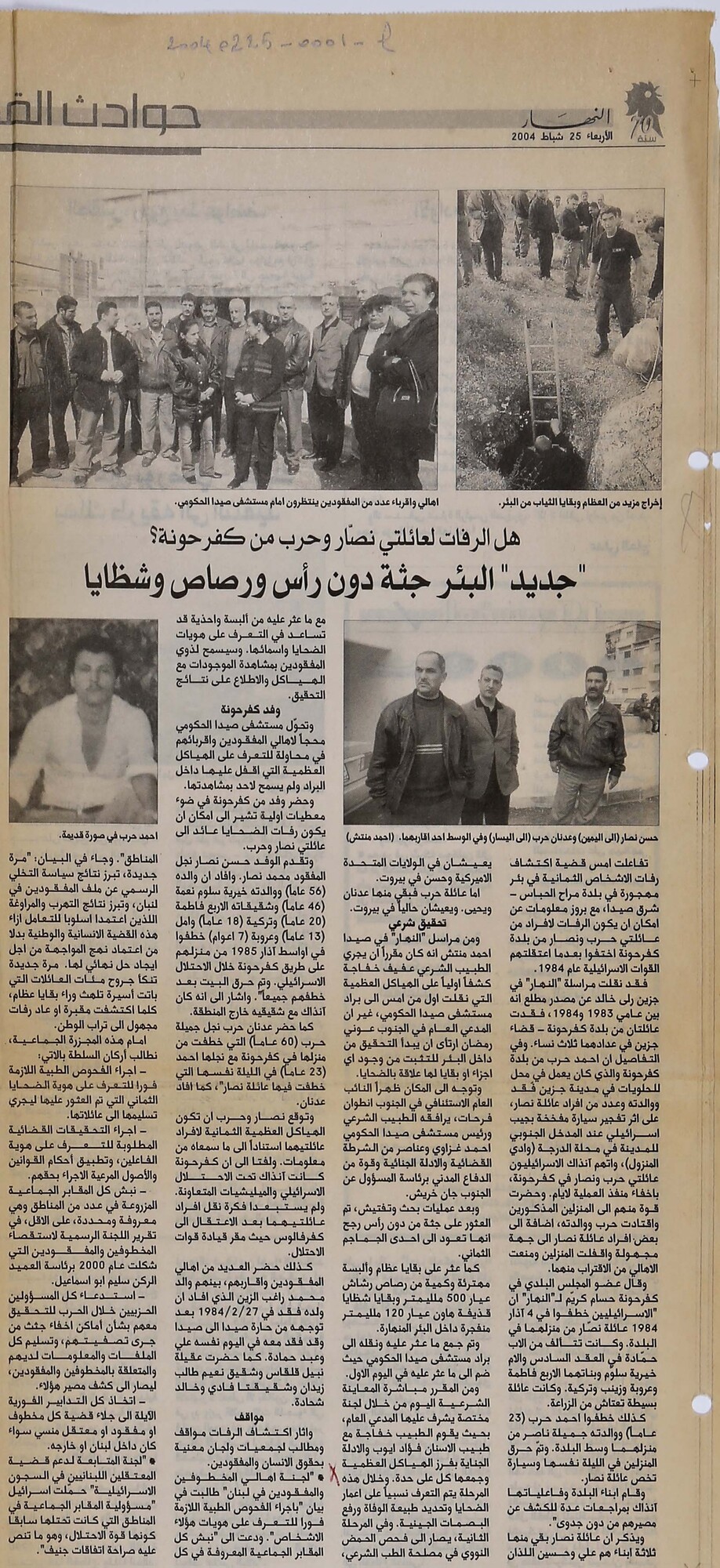 New updates on the well: A decapitated corpse, bullets and debris were found. Do the remains belong to the families of Nassar and Harb of Kfarhouna?