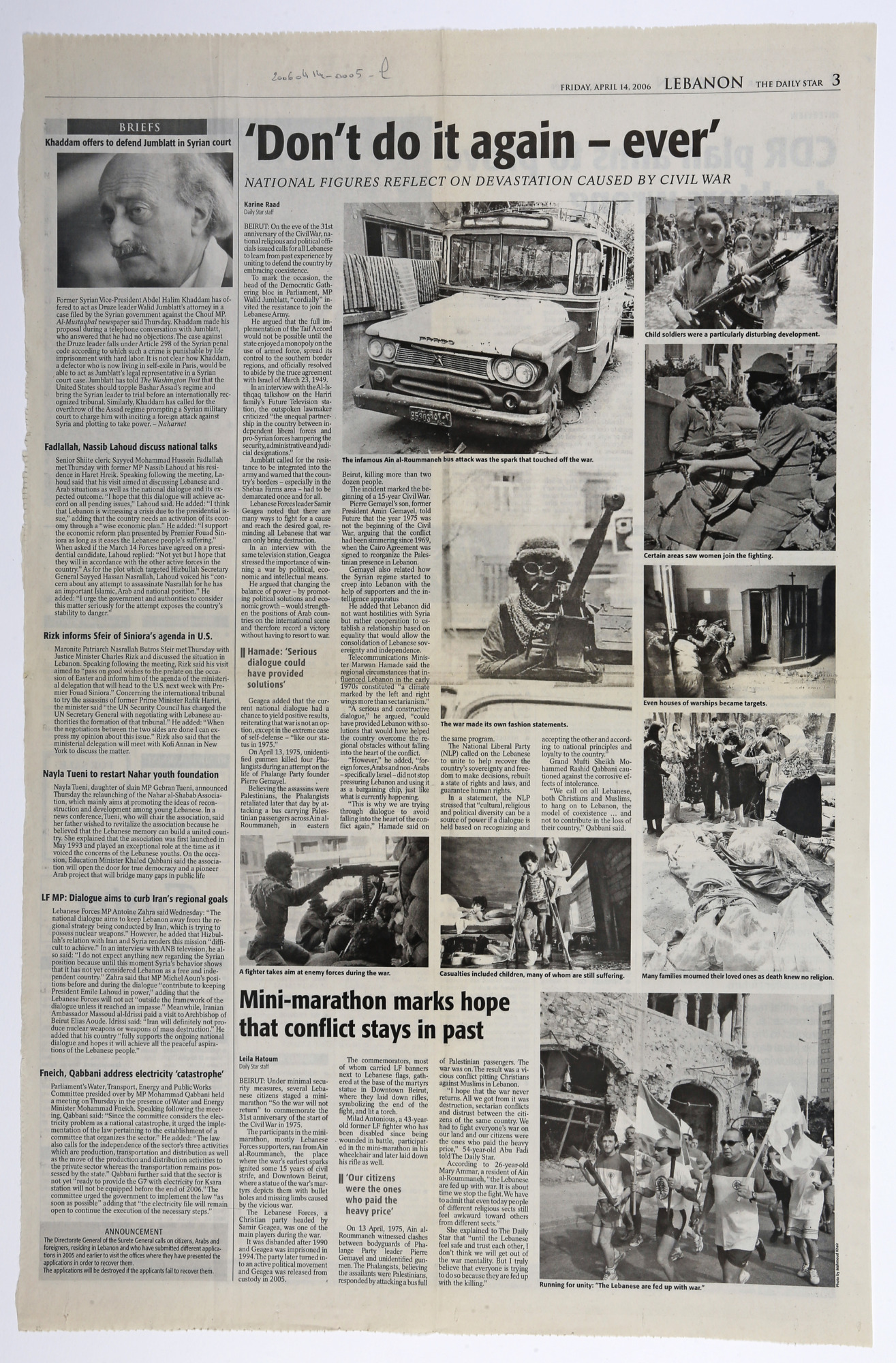 - en Don't do it again ever: National figures reflect on devastation caused by civil war