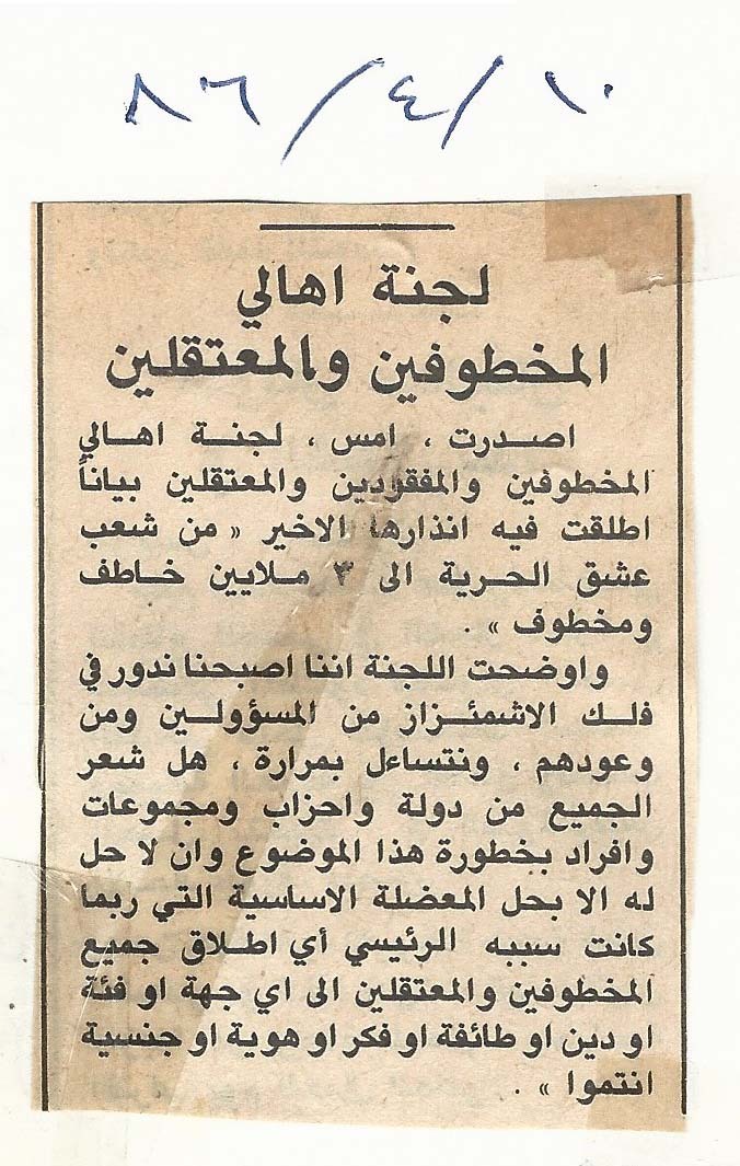 - ar لجنة اهالي المخطوفين والمعتقلين