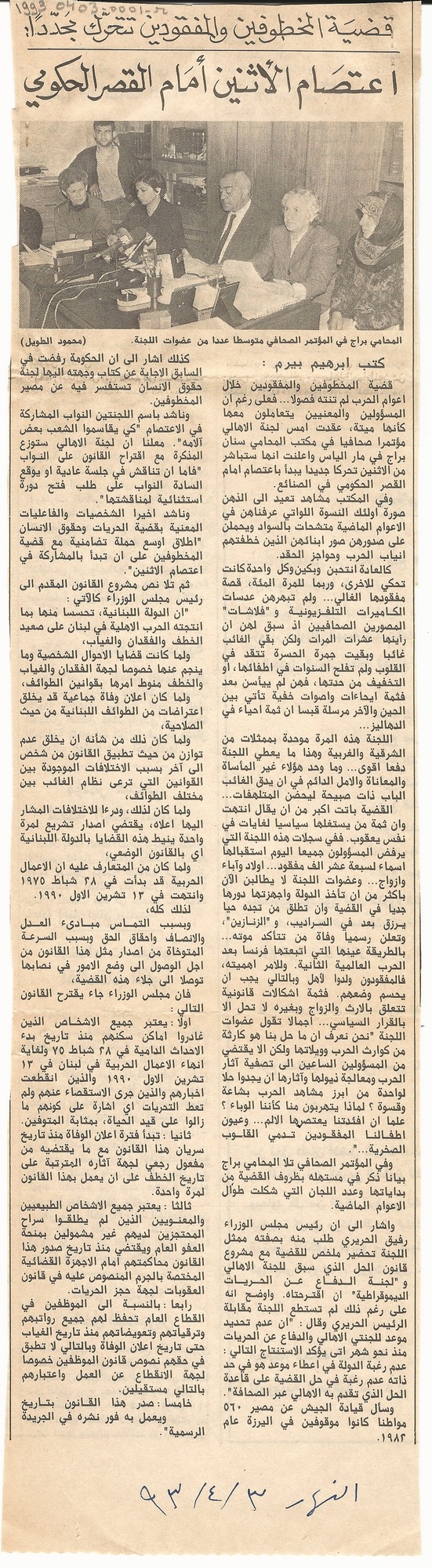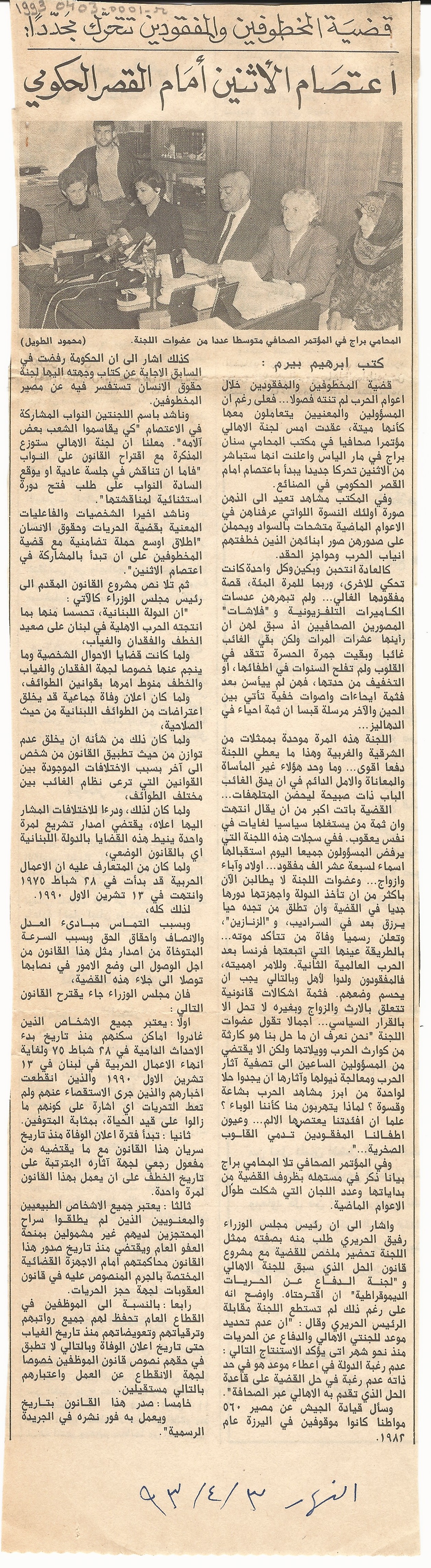 - en The issue of the kidnapped gains momentum anew. Monday sit-in in front of the Serail.