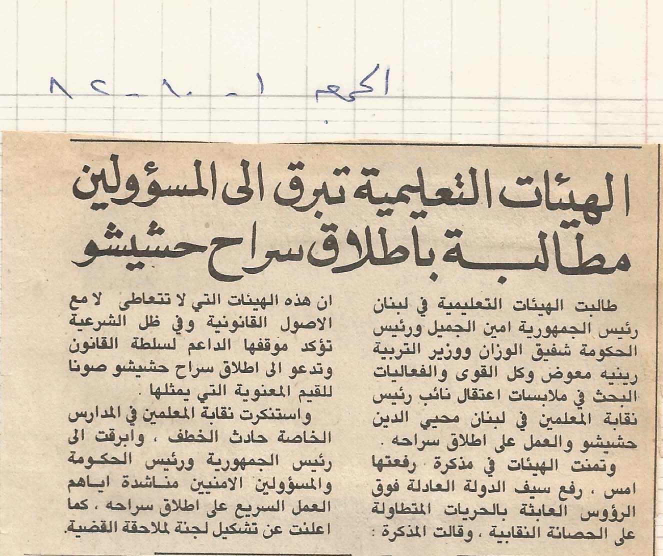الهيئات التعليمية تبرق إلى المسؤولين مطالبة بإطلاق سراح حشيشو