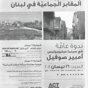 Public forum : The issue of mass graves in Lebanon, Three decades have passed and the issue remains unsettled.