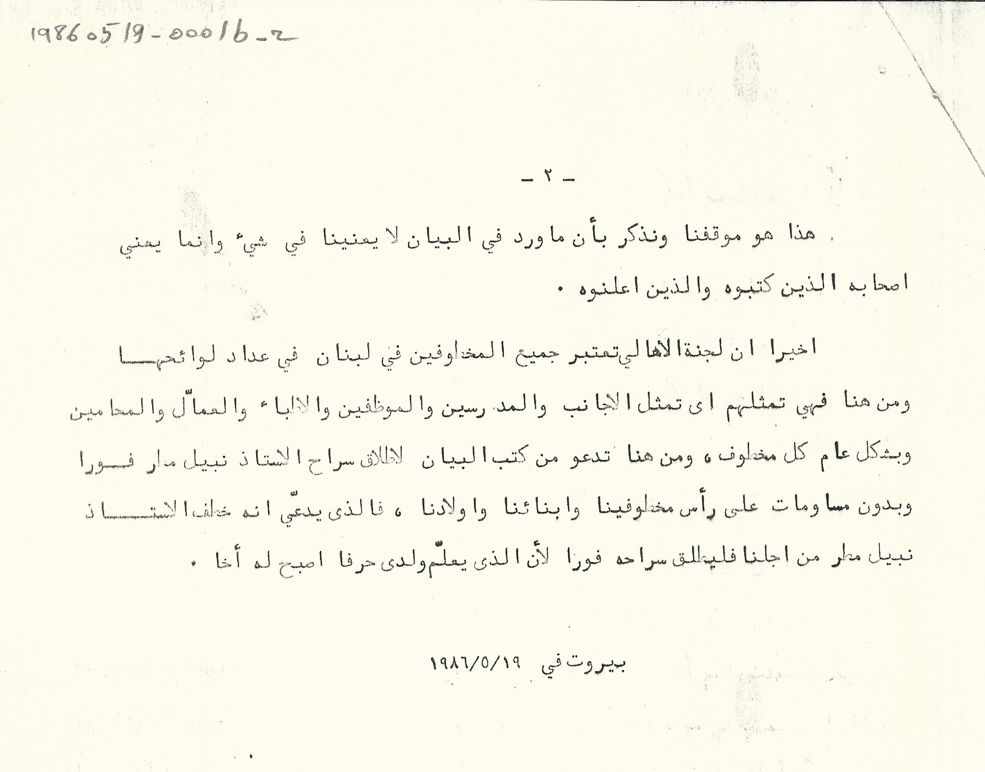 - بيان، 2 صفحة