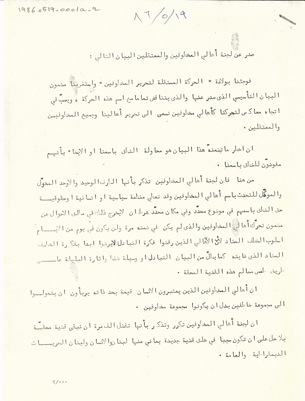 - ar لجنة اهالي المخطوفين والمعتقلين توضح موقفها من الحركة المستقلة لتحرير المخطوفين