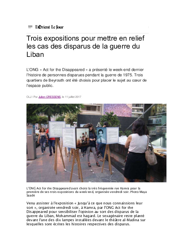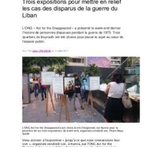 - fr Trois expositions pour mettre en relief les cas des disparus de la guerre du Liban