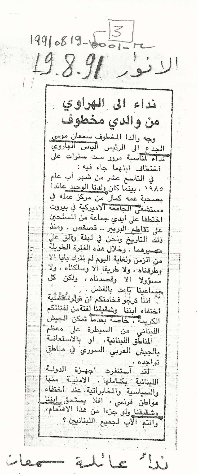 - ar نداء الى الهراوي من والدي مخطوف