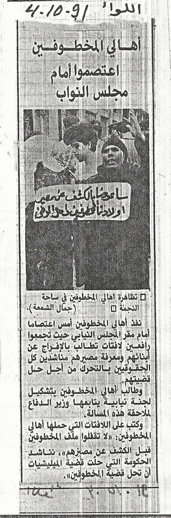 - ar اهالي المخطوفين اعتصموا امام مجلس النواب