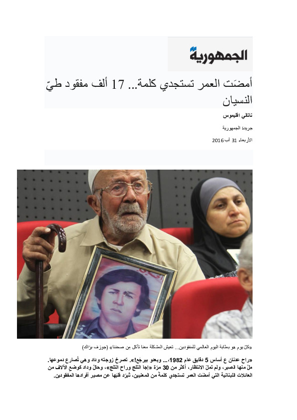 - ar امضت العمر تستجدي بكلمة: 17 الف مفقود طي النسيان