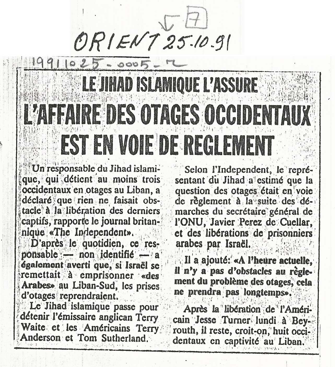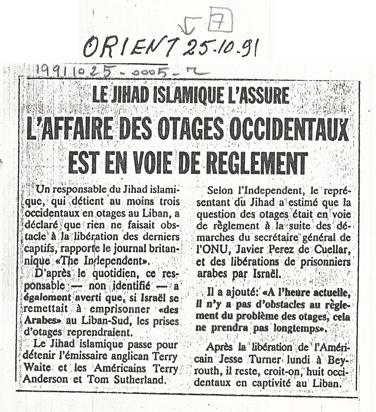 - fr Le Jihad Islamique l'assure: L'Affaire des otages occidentaux est en voie de réglement