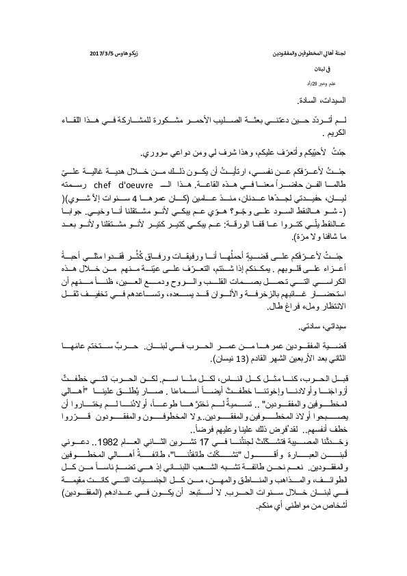 - ar مسار نضال اهالي المفقودين في لقاء بدعوة من اللجنة الدولية للصليب الاحمر الدولي