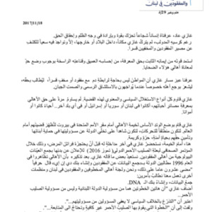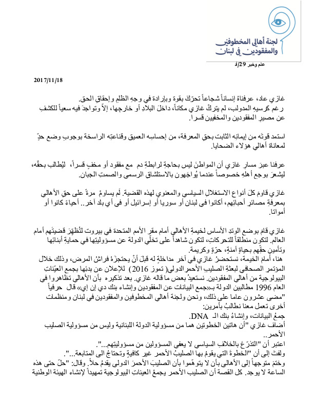 - ar كلمة لجنة اهالي المخطوفين والمفقودين في الذكرى السنوية الاولى لرحيل غازي عاد