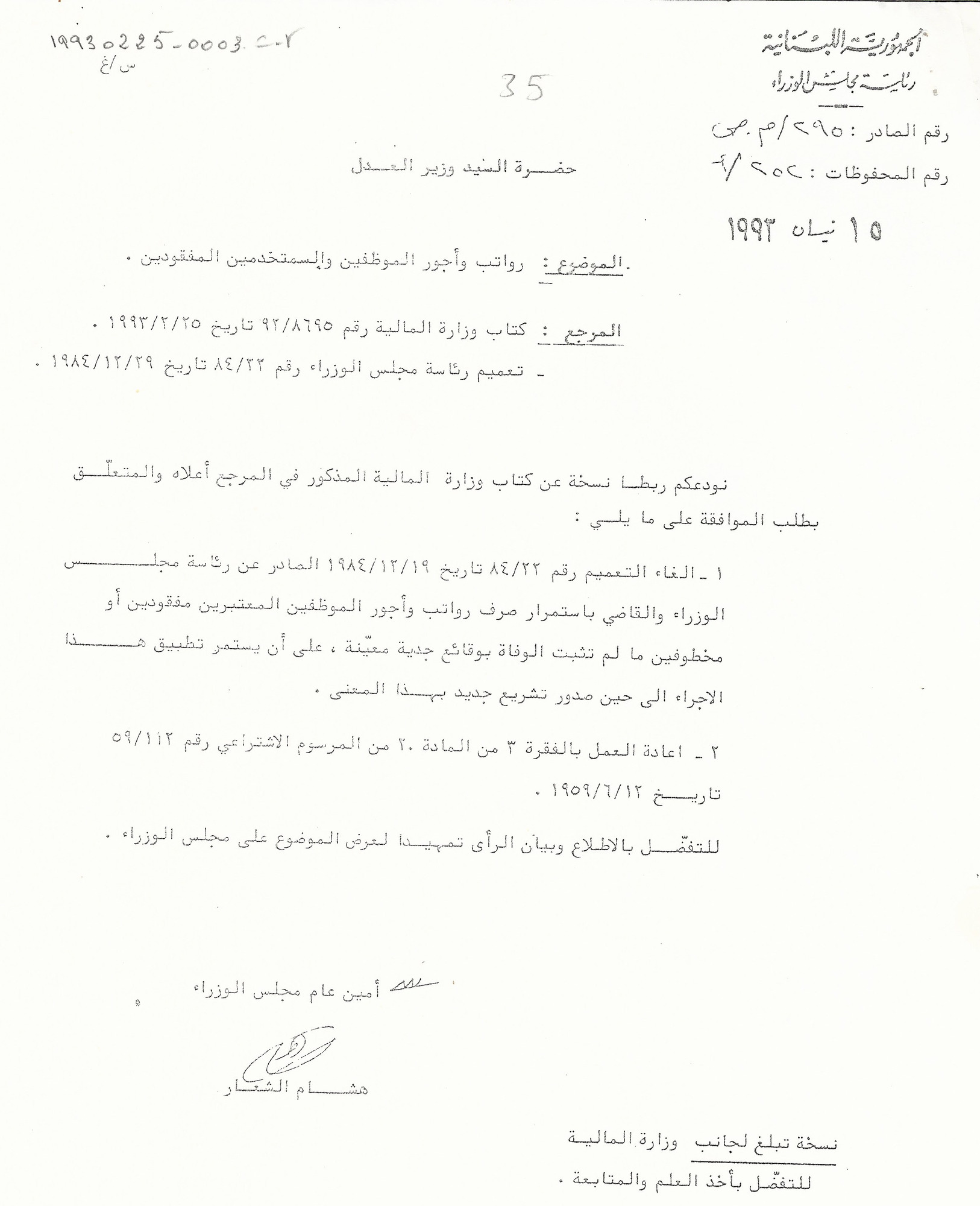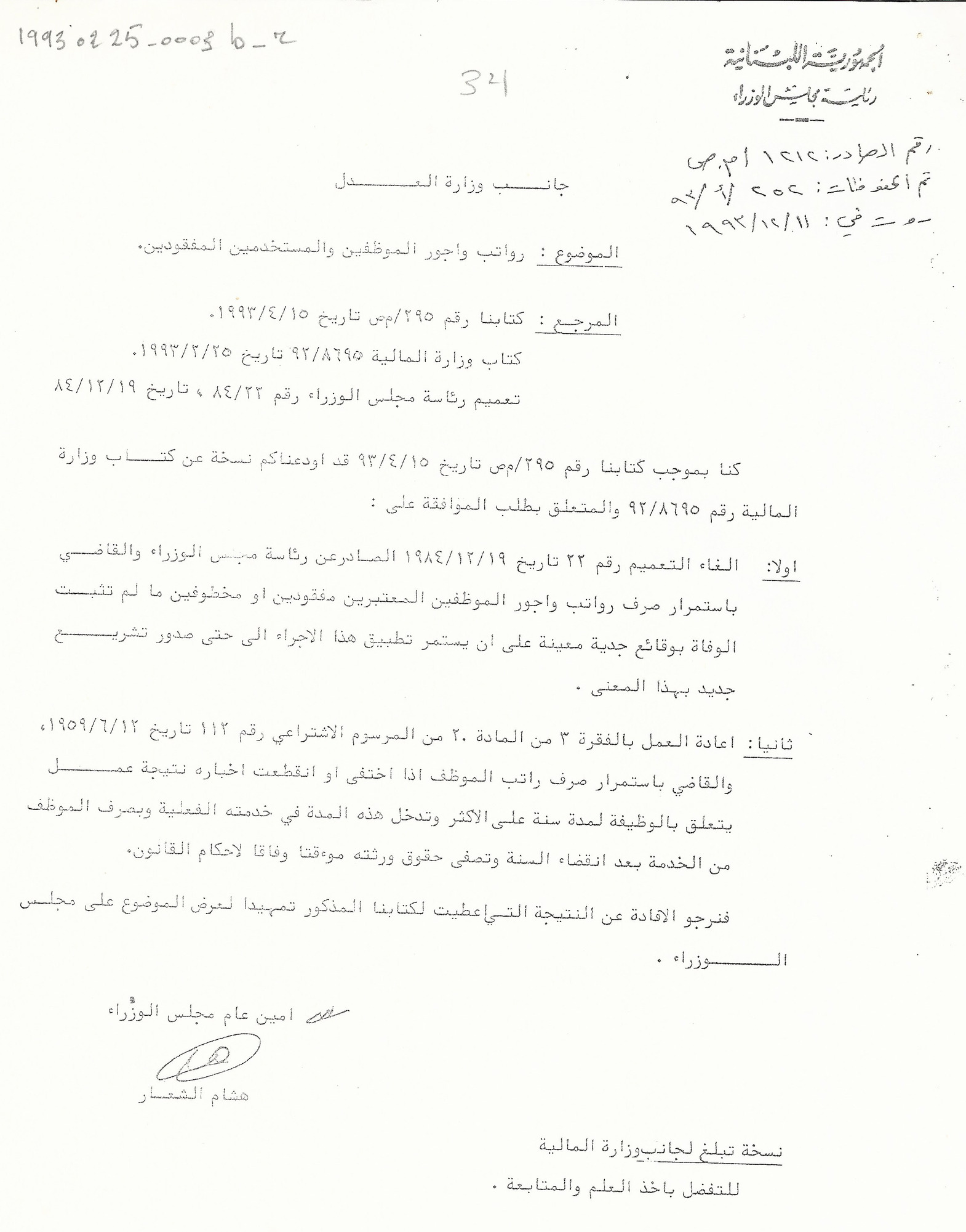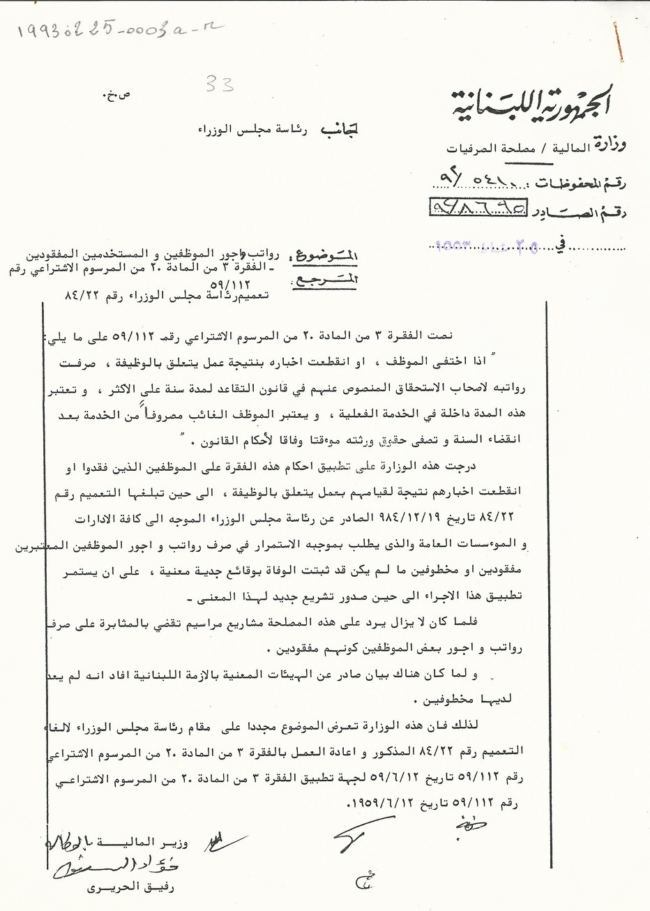رواتب وأجور الموظفين والمستخدمين المفقودين