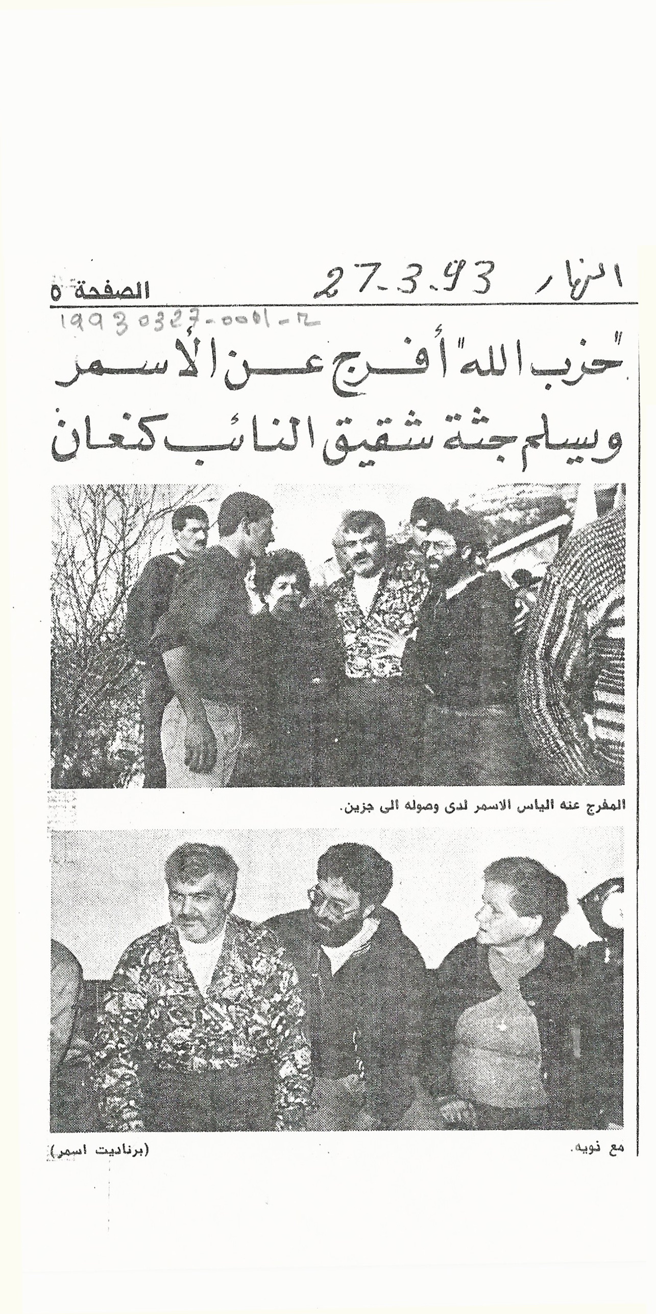 - ar حزب الله افرج عن الاسمر ويسلم جثة شقيق النائب كنعان