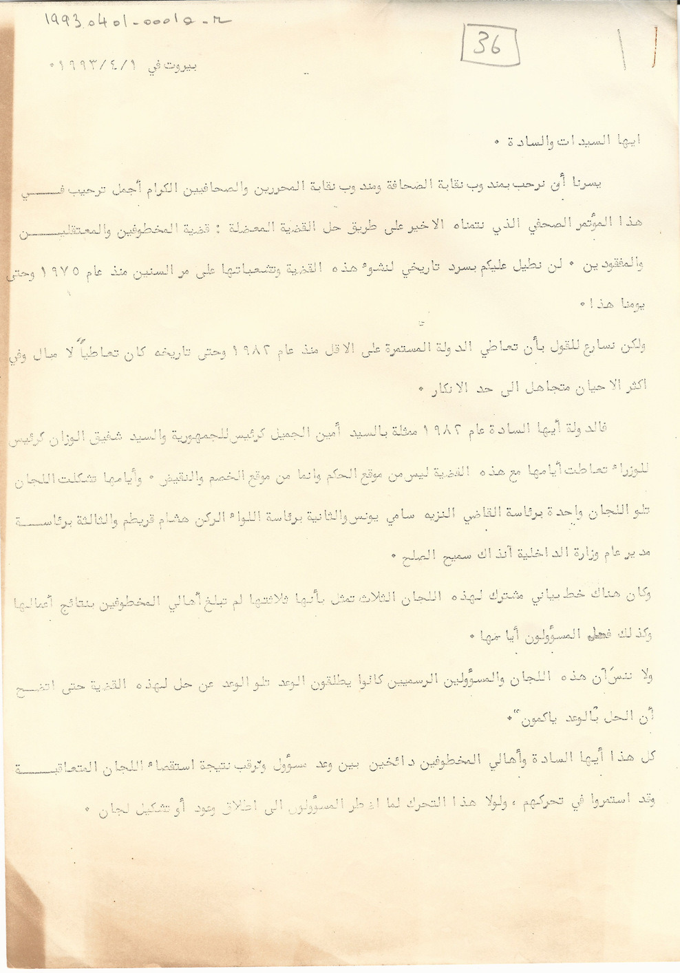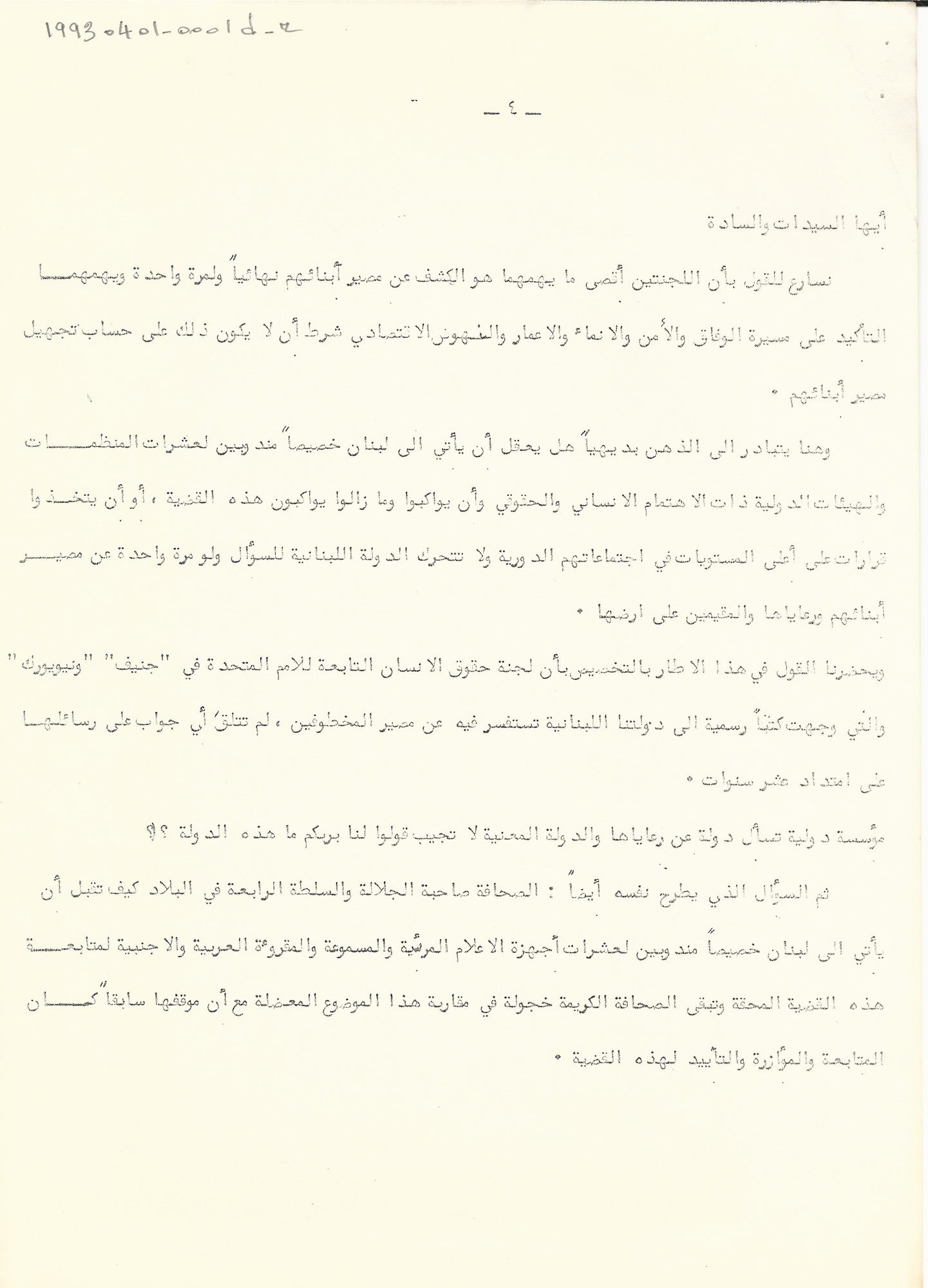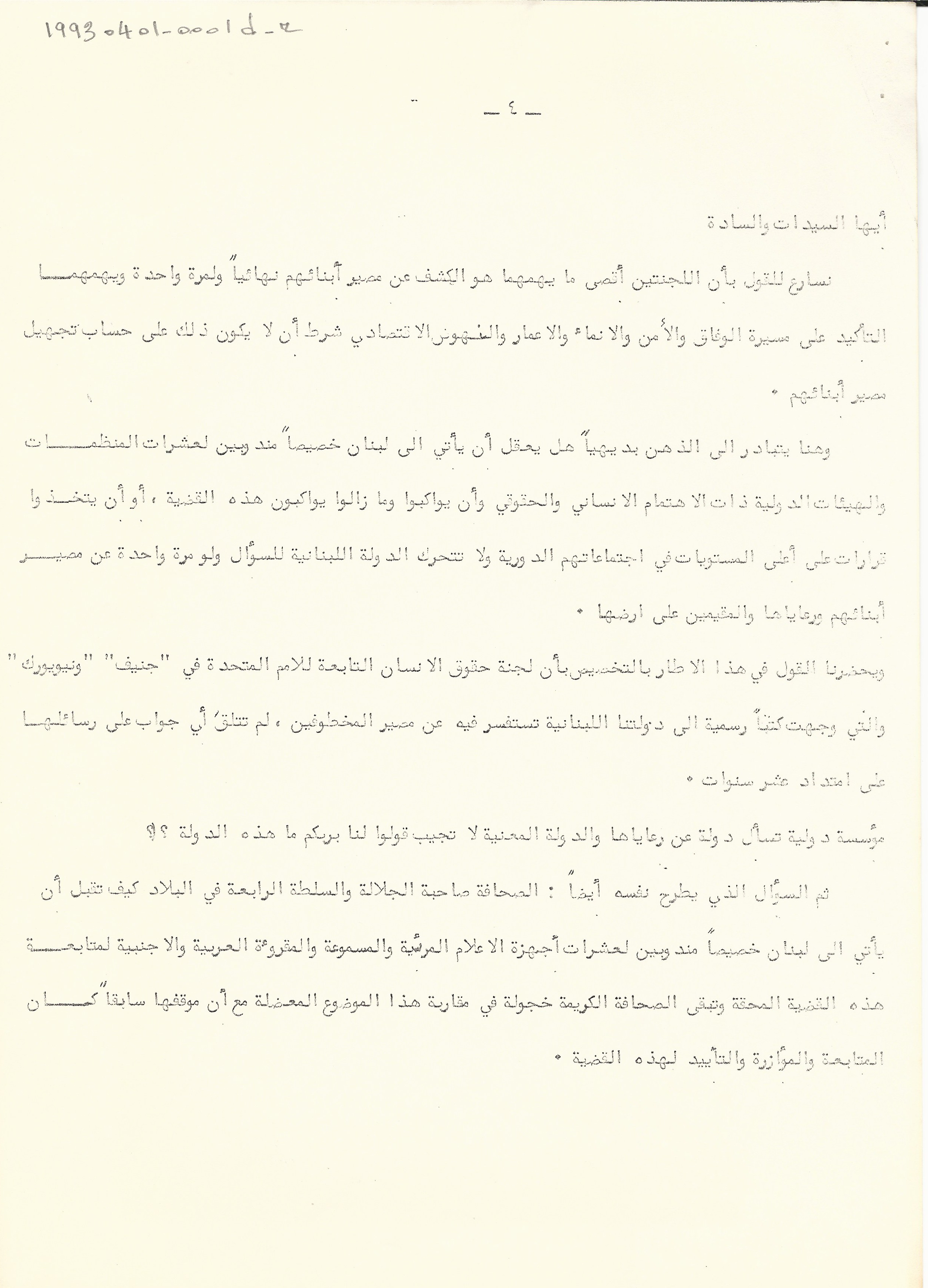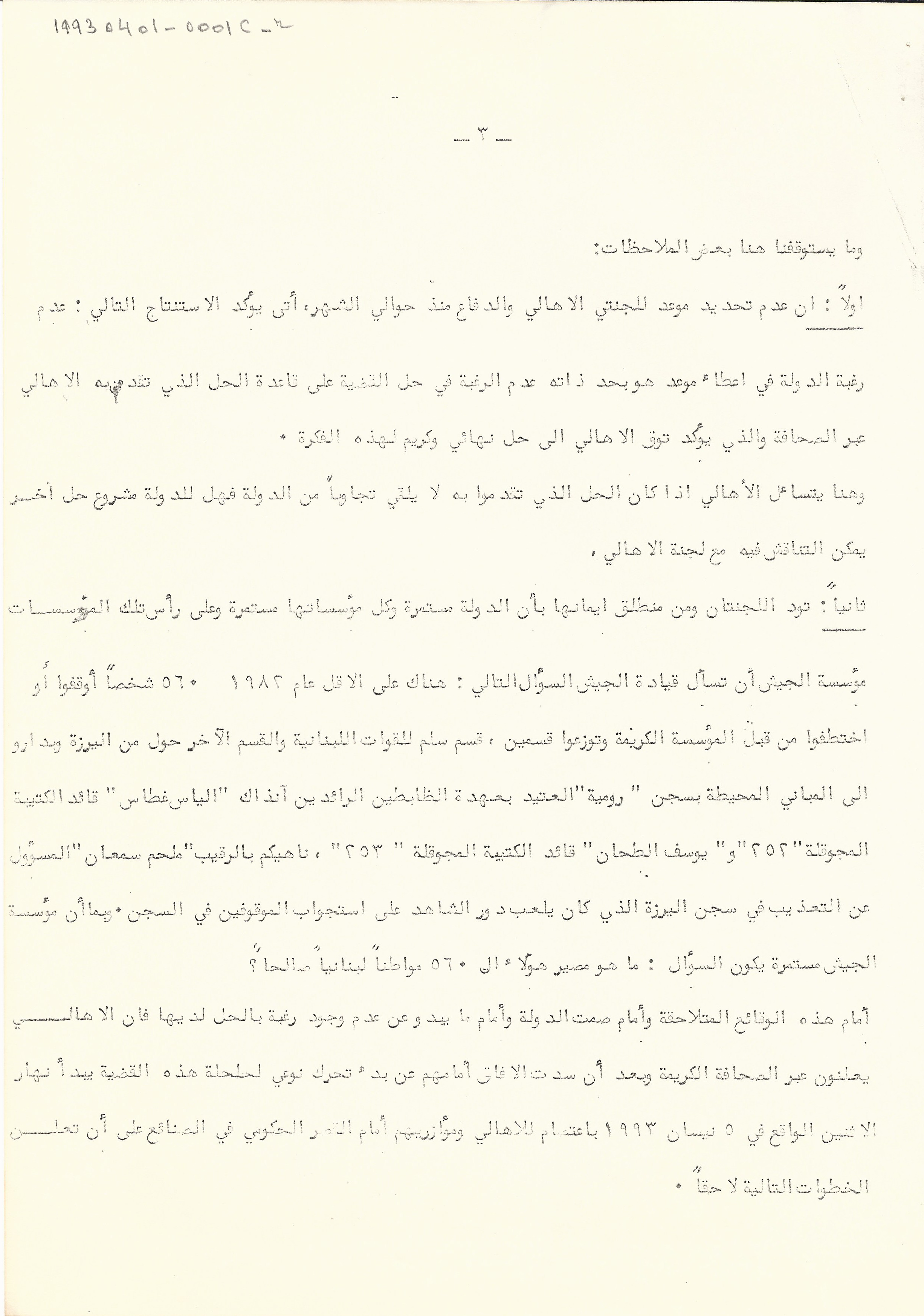 - ar اعلان بدء اعتصام اهالي المخطوفين والمفقودين امام القصر الحكومي
