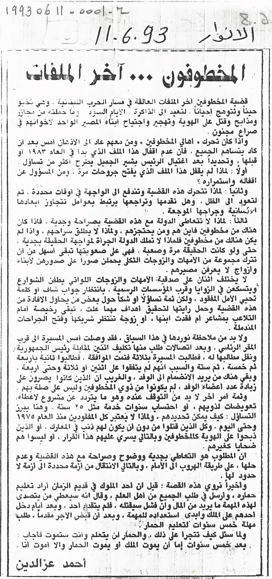 - en The issue of the kidnapped is a minor concern of Lebanese officials.