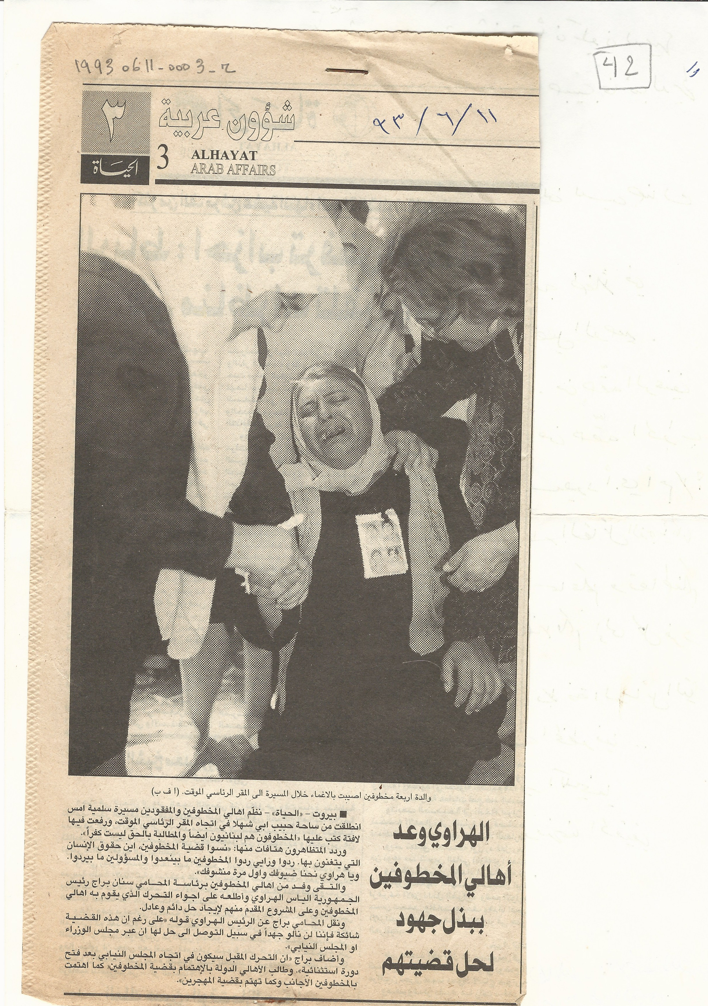 - en Al-Hrawi promises the families of the kidnapped to put in efforts to solve their issue.