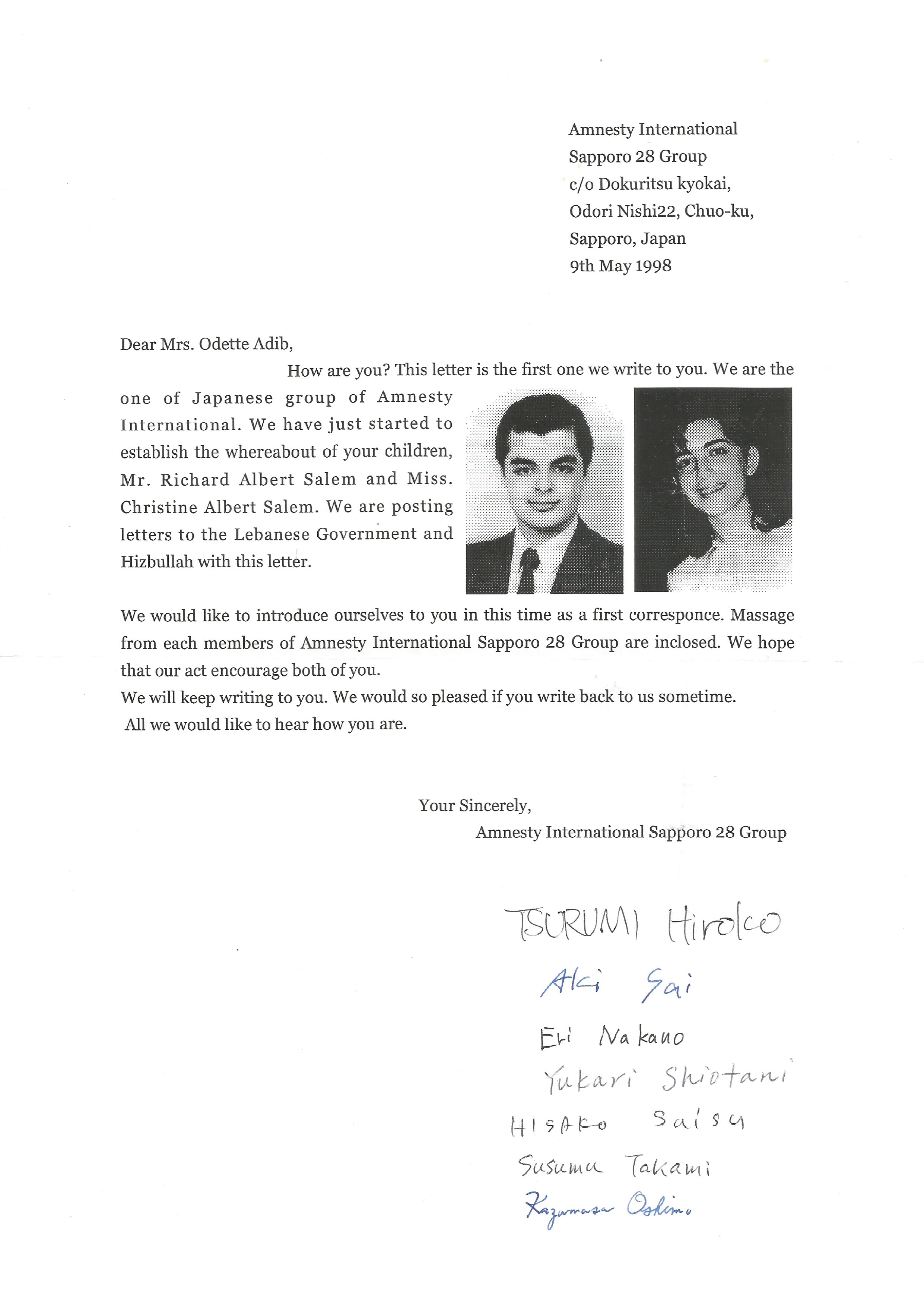The contribution of the Japanese team in Amnesty International, by sending letters to the Lebanese government to clarify the fate of the disappeared