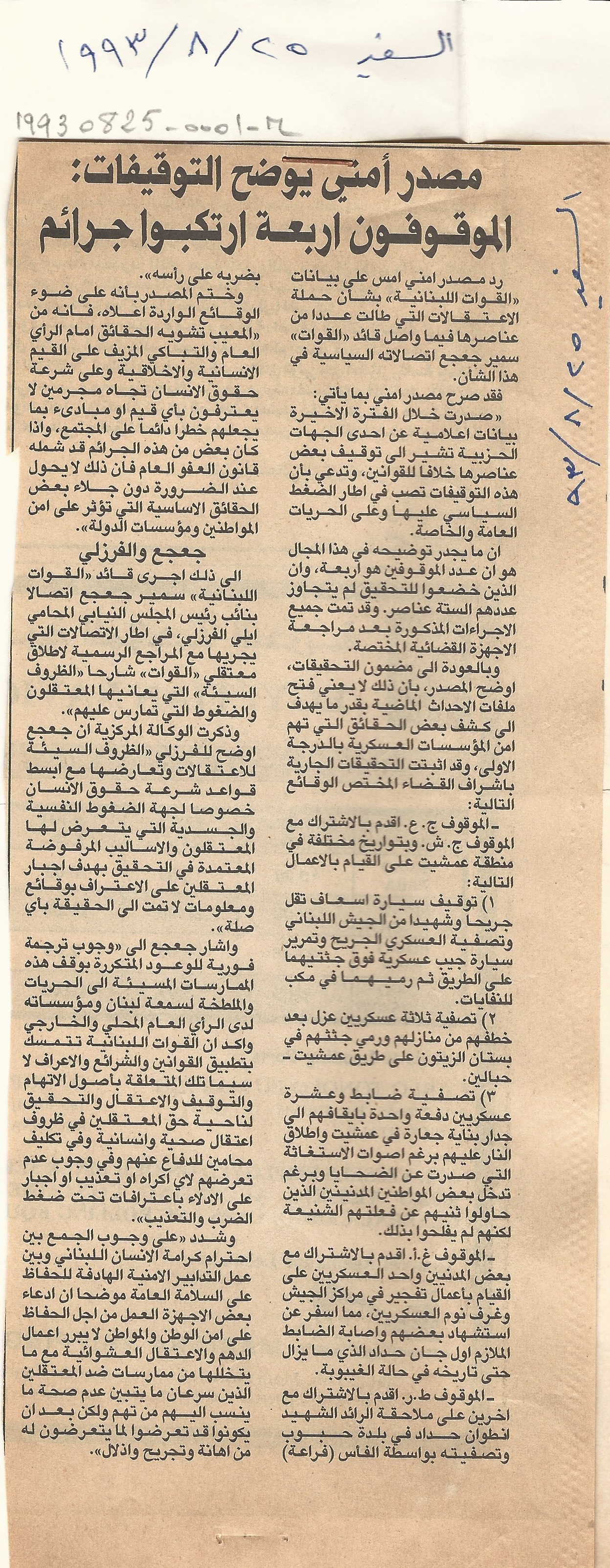 - ar مصدر امني يوضح التوقيفات: الموقوفون اربعة ارتكبوا جرائم