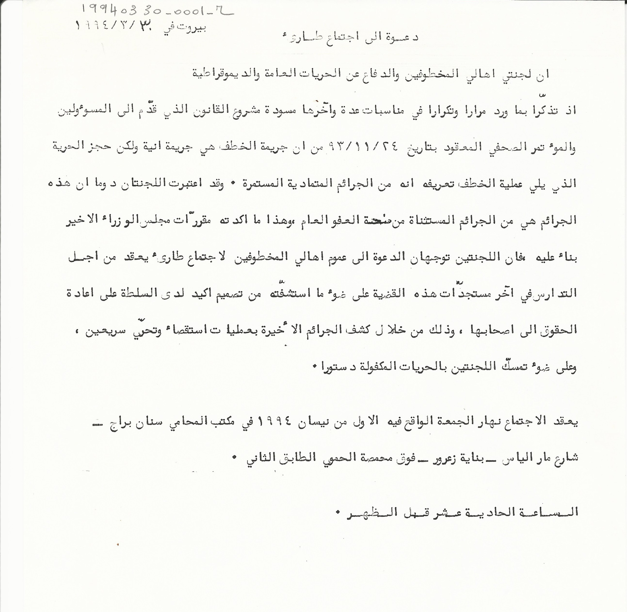 - لجنة اهالي المخطوفين والمفقودين في لبنان