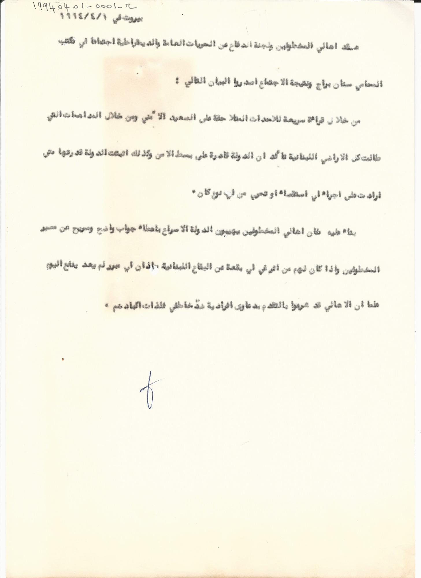بيان اجتماع اهالي المخطوفين ولجنة الدفاع عن الحريات العامة والديمقراطية، حثوا فيه الدولة الكشف عن مصير المخطوفين