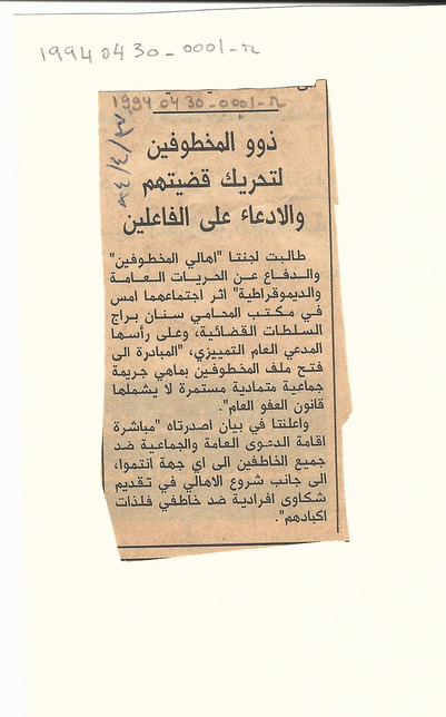 - ar ذوو المخطوفين لتحريك قضيتهم والإدعاءعلى الفاعلين