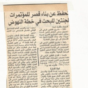 - ar حفظ عن بناء قصر المؤتمرات، لجنتين للبحث عن خطة النهوض