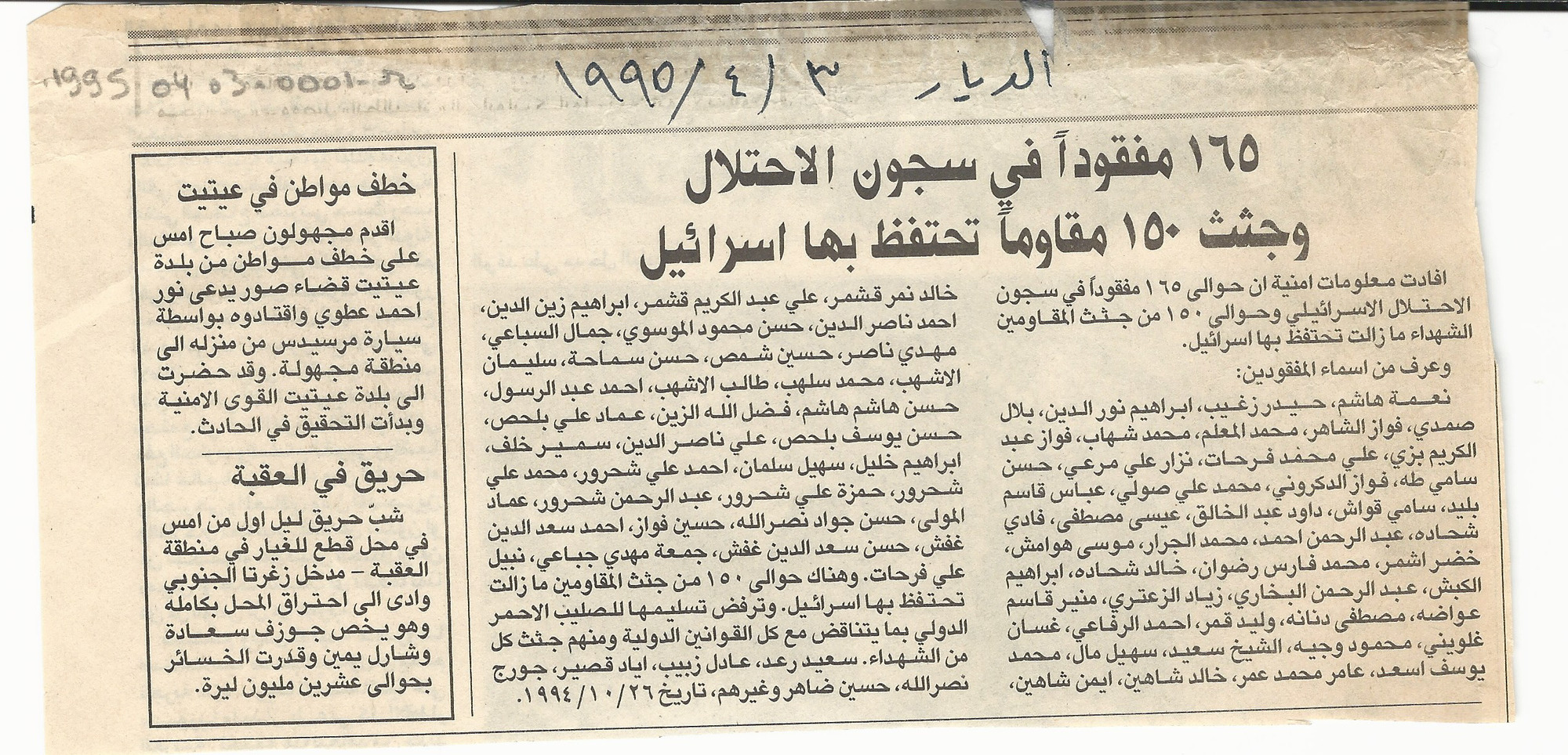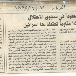 - en 165 missing remain in the prisons of the occupation and Israel holds the bodies of 150 resistance fighters.