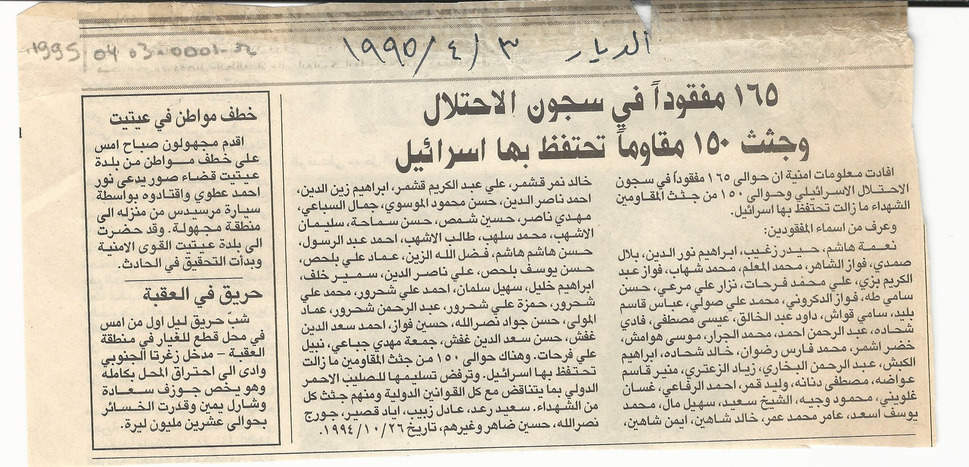 - ar ١٦٥ مفقودا في سجون الاحتلال وجثث ١٥۰ مقاوما تحتفظ بها اسرائيل