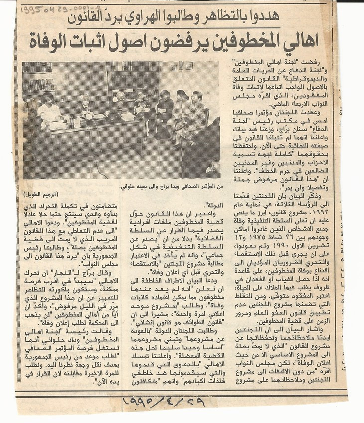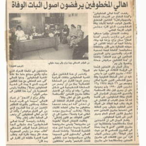 The families of the kidnapped refuse the procedures for proving death, threaten to protest and demand al-Hrawi to return the law.