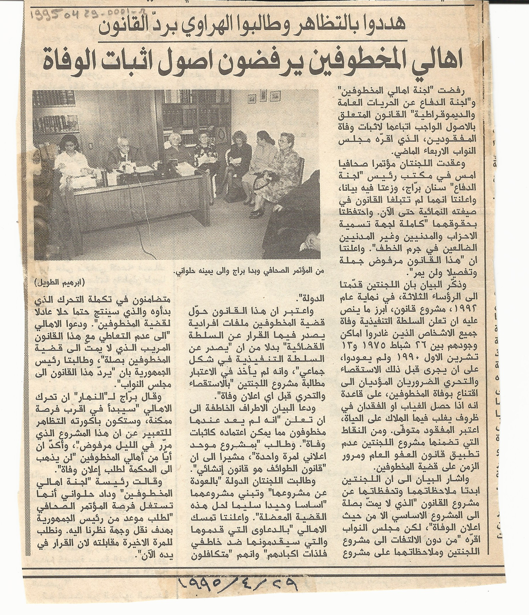 اهالي المخطوفين يرفضون اصول اثبات الوفاة، هددوا بالتظاهر وطالبوا الهراوي برد القانون