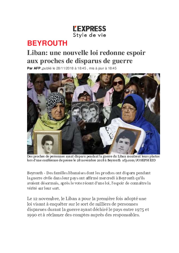 - fr Liban: une nouvelle loi redonne espoir aux proches de disparus de guerre