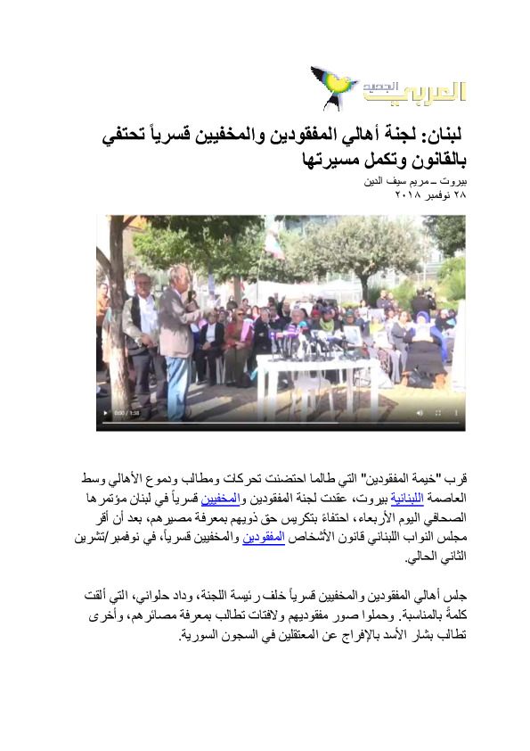 - ar لبنان: لجنة أهالي المفقودين والمخفيين قسرياً تحتفي بالقانون وتكمل مسيرتها