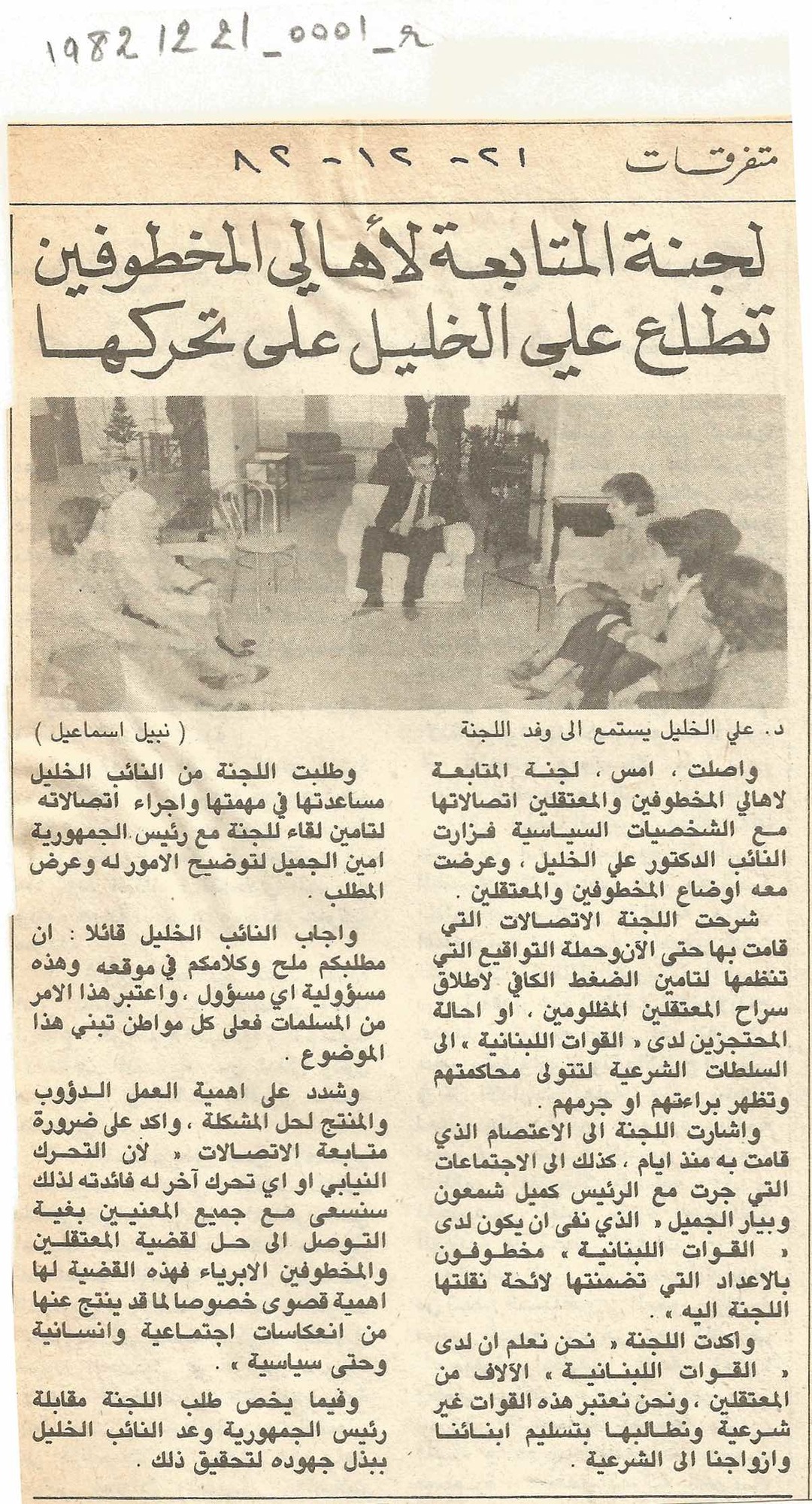 - en The Follow-up Committee of the Families of the kidnapped briefed Ali al-Khalil on its movement