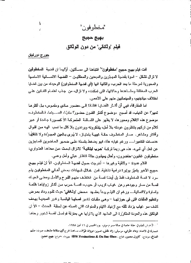 - ar مخطوفون بهيج حجيج فيلم وثائقي من دون الوثائق