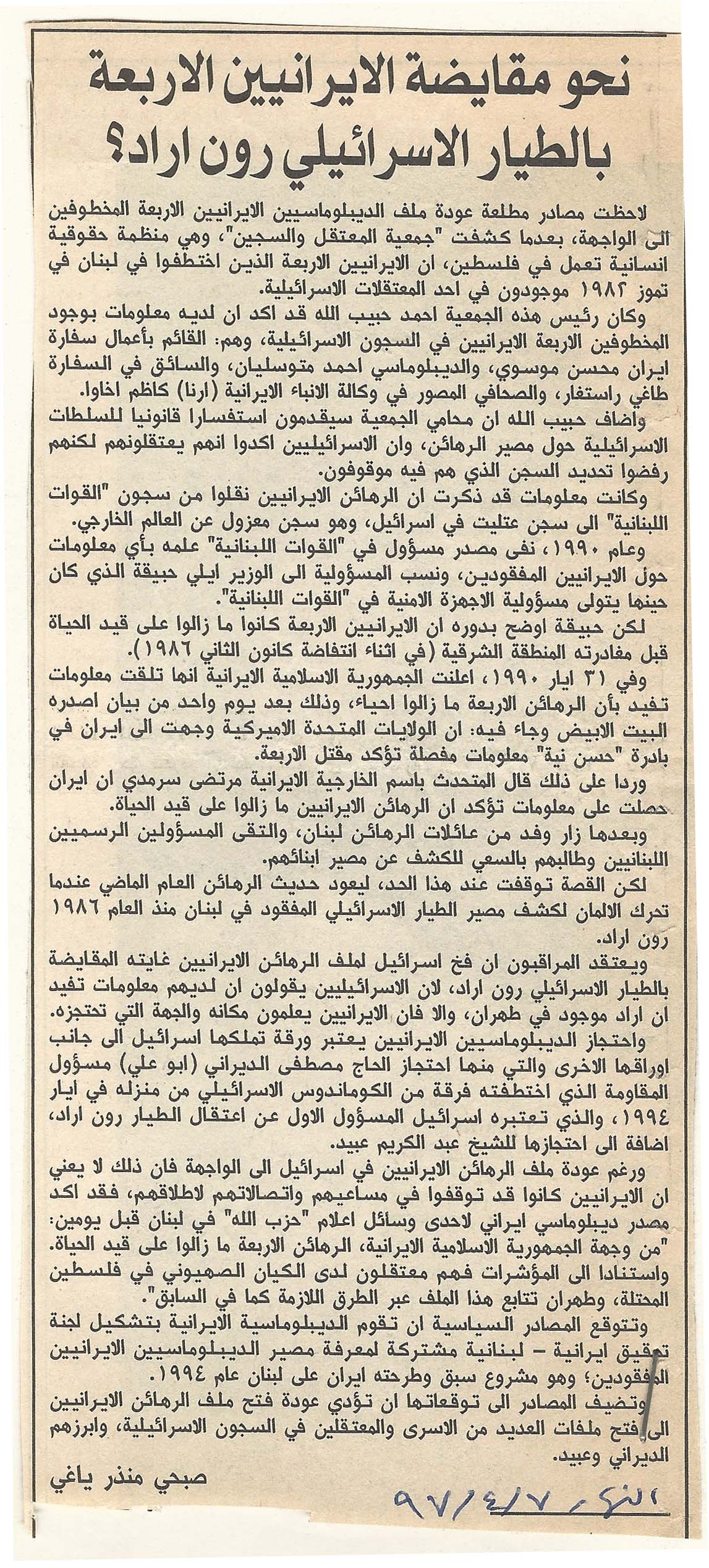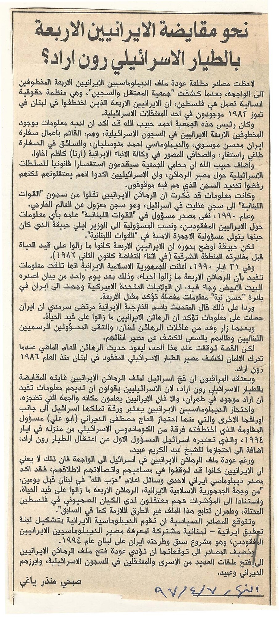 - ar نحو مقايضة الايرانيين الأربعة بالطيار الاسرائلي رون أراد