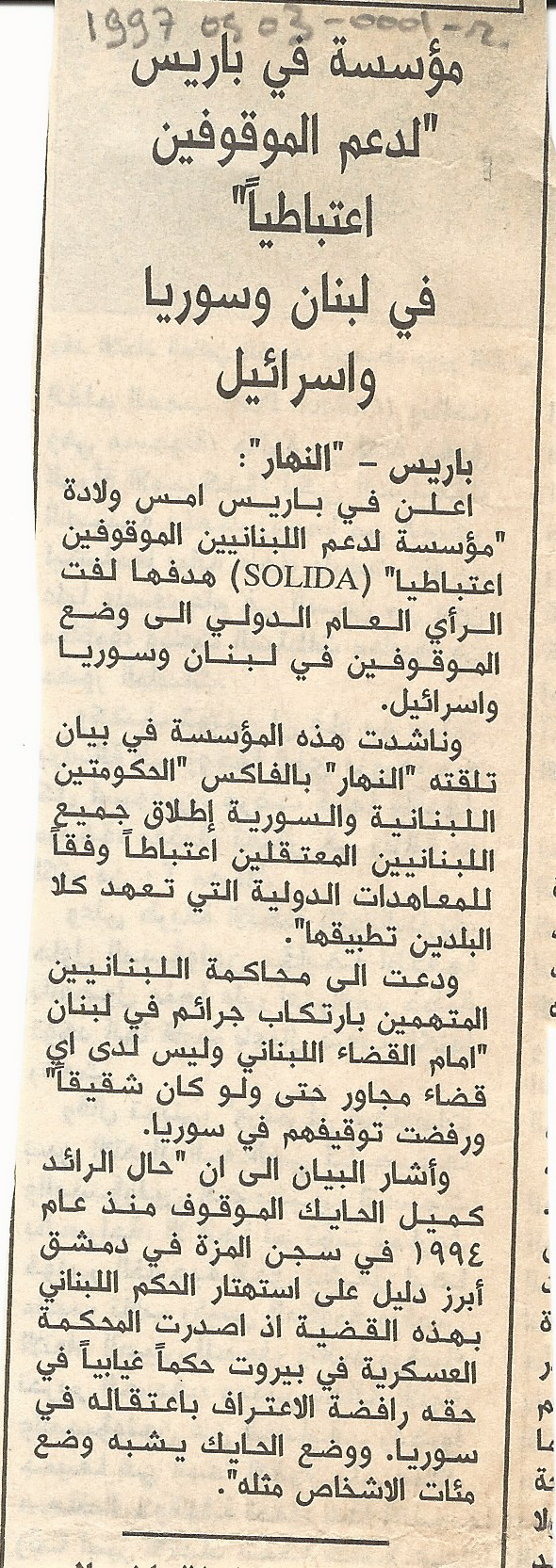 - en A Paris-based organization supports the arbitrarily detained in Lebanon, Syria and Israel