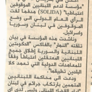 - ar مؤسسة في باريس لدعم الموقوفين اعتباطياً في لبنان وسوريا واسرائيل