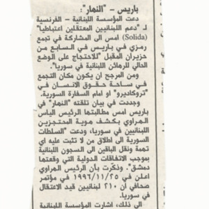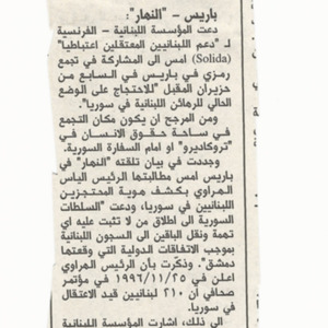 - ar تجمع في باريس احتجاجاً على حال المعتقلين اللبنانيين في سوريا
