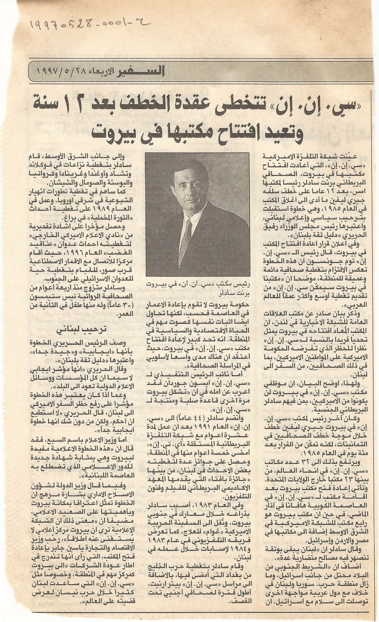 - ar سي ان ان تتخطى عقدة الخطف بعد 12 سنة و تعيد افتتاح مكتبها في بيروت
