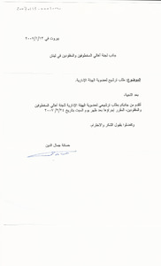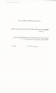 طلب ترشيح لعضوية الهيئة الادارية للجنة اهالي المخطوفين والمفقودين في لبنان مخطوط، 1 صفحة -