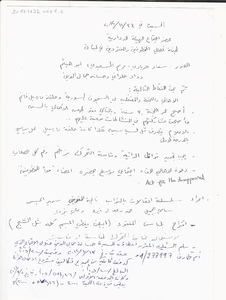 محضر اجتماع الهيئة الادارية للجنة الاهالي :السبت، 24، 11، 2012 مخطوط، 1 صفحة -