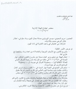 محضر اجتماع الهيئة الادارية للجنة الاهالي :السبت، 17، 12، 2011 تقرير، 1 صفحة -