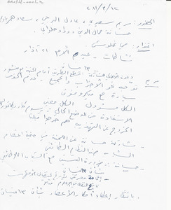 محضر اجتماع الهيئة الادارية للجنة الاهالي :السبت، 12، 3، 2011 مخطوط، 1 صفحة -