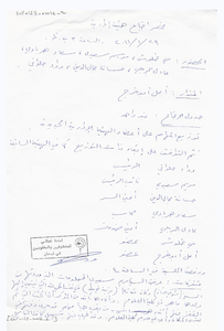 محضر اجتماع الهيئة الادارية للجنة الاهالي :السبت، 29، 1، 2011 مخطوط، 2 صفحة -
