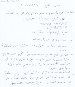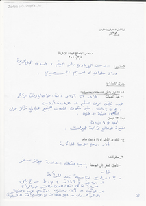 محضر اجتماع الهيئة الادارية للجنة الاهالي :السبت، 6، 2، 2010 مخطوط، 1 صفحة -
